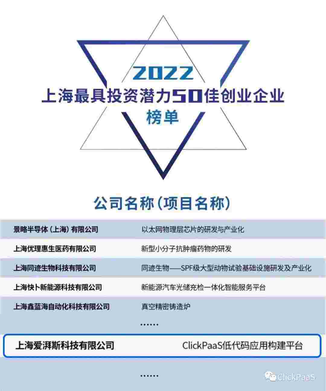 钱能钱包 作为国内低代码PaaS平台的领军企业,,与120家创企入围角逐。。期间接受了来自德同资本、、、领中资本等知名投资机构的10位投资人组成专家评委团的背靠背盲选。。。。并最终入围“2022上海最具投资潜力50佳创业企业”榜单,,,被列入“上海市重点培育创业企业库”。。。。
